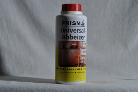 Prisma Universal Abbeizer mit einem Pinsel satt auftragen und wirken lassen. Die abzubeizenden Gegenstände können auch in ein Tauchbad gelegt werden. Im Normalfall beträgt die Einwirkzeit ca. 15 - 45 Minuten. Bei kritischen Farbschichten bis zu mehreren Stunden. Die Entlackung wurd durch Auflegen einer Folie und hohe Temperaturen beschleunigt. Bei besonders hartnäckigen Farbschichten ist es zweckmäßig, nach der Ablösung des ersten Anstriches den Abbeizer ein zweites mal satt aufzutragen. Nach der Entfernung die Gegenstände mit Wasser u. Bürste abwaschen.